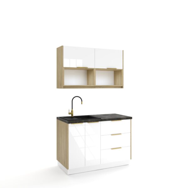 Otwarte górne szafki – szybki dostęp do akcesoriów