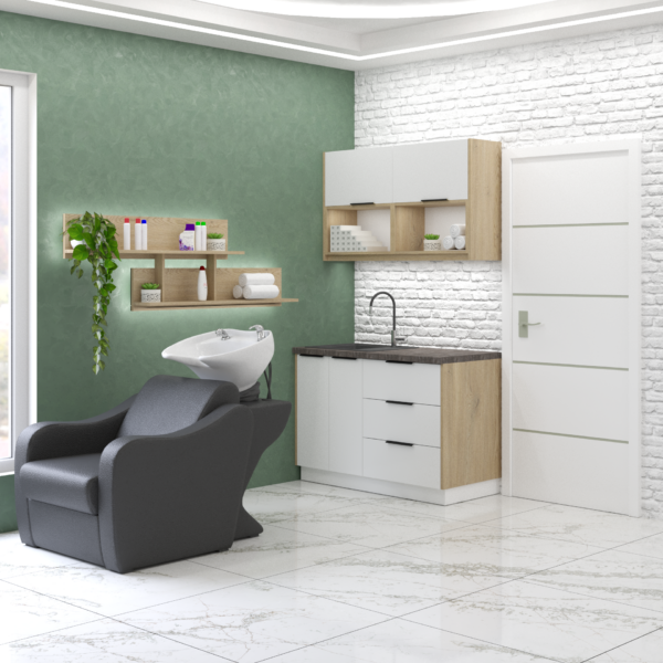 Całość łączy estetykę, ergonomię i wygodę, dzięki czemu labor doskonale sprawdza się w codziennej pracy – niezależnie, czy będzie używany w salonie fryzjerskim, czy gabinecie kosmetycznym.